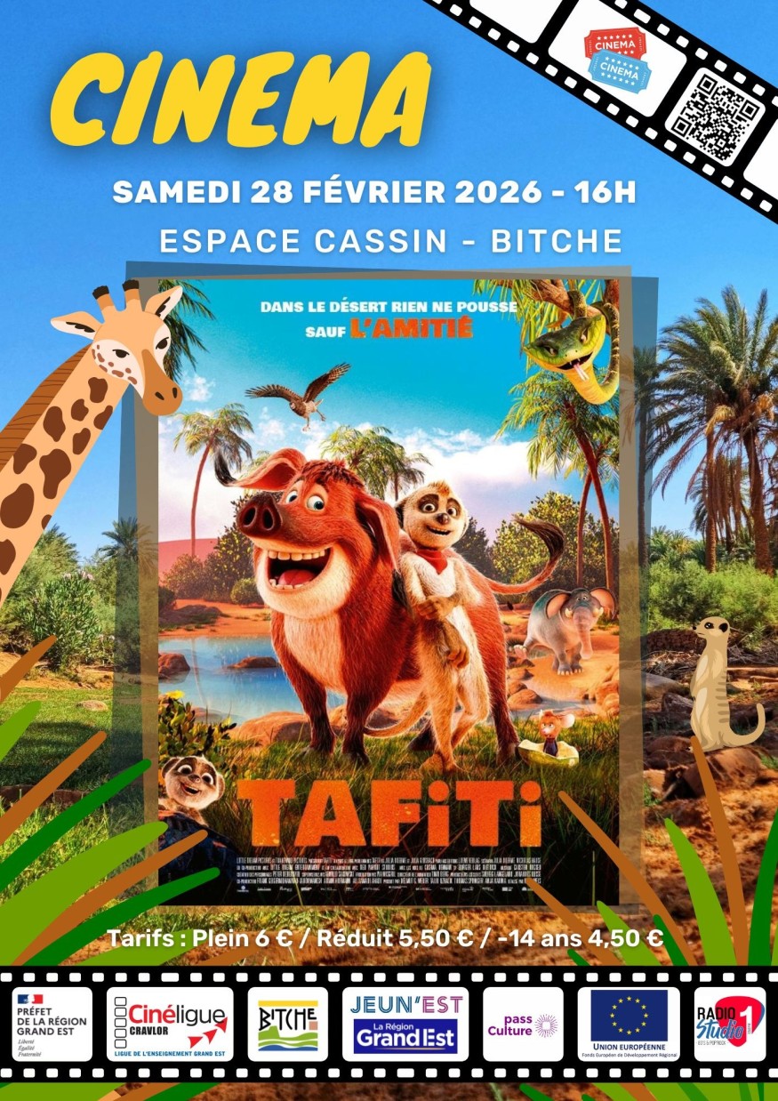 Avec l'association CinéLigue CRAVLOR (Centre Régional Audio-Visuel de Lorraine), la ville de Bitche organise une séance de cinéma à l'espace Cassin le 28 février 2026, à 16h00.