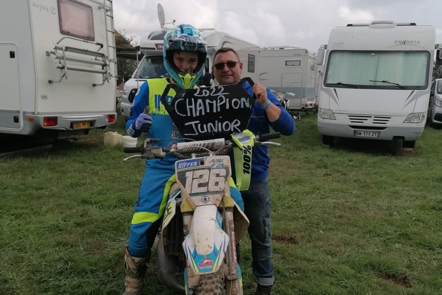 Cette année nous avons suivi Loïc Kiffer, pilote de 15 ans licencié au moto club à Bitche. La saison est terminée, et pour finir en beauté, il s’est classé Champion Junior dans la catégorie 125cc, qu’il vient juste de rejoindre. Il s’est également classé 3ème au classement général de sa catégorie.