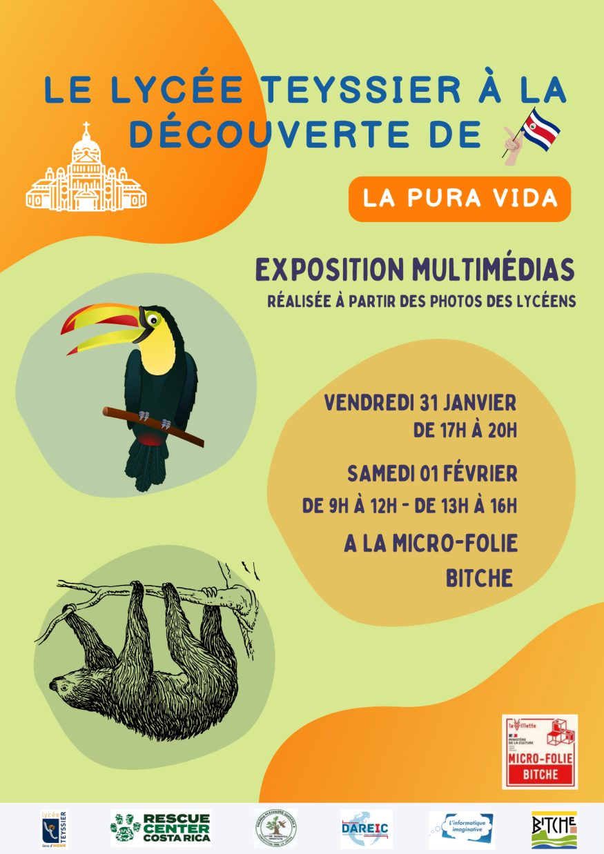 Les 31 janvier de 17h à 20h et le 1er février 2025, de 9h à 12h et de 13h à 16h, la Micro-Folie Bitche vous invite à découvrir une exposition exceptionnelle mettant en lumière un projet multimédia réalisé par des lycéens lors de leur séjour au Costa Rica.