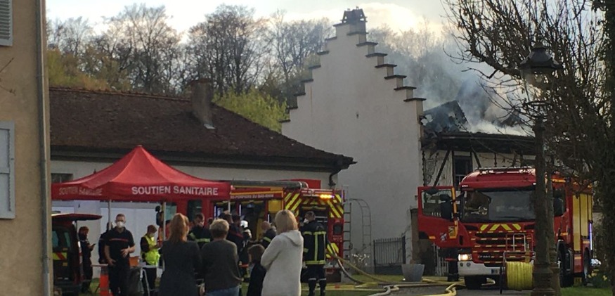 Un incendie impressionnant a eu lieu cet après-midi à Altwiller en Alsace Bossue. Le feu s'est déclaré dans les combles d'une vaste maison d'habitation faisant partie du domaine de Bonnefontaine. De nombreux pompiers venus de Petersbach, Saverne, Sarre-Union ou encore Haguenau, ont réussi à maîtriser cet incendie qui a totalement ravagé la toiture du bâtiment. Les occupants de la maison, fort heureusement sains et saufs, devront être relogés. (Photo / RS1).